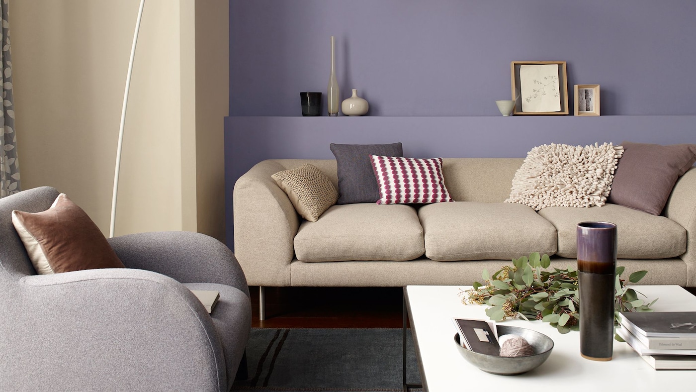 Frame your room's focal point with a hit of dusky purple – even a subtle shade like Heather Climb can make a big impact if used in a striking way, such as on a chimney breast or recess.
