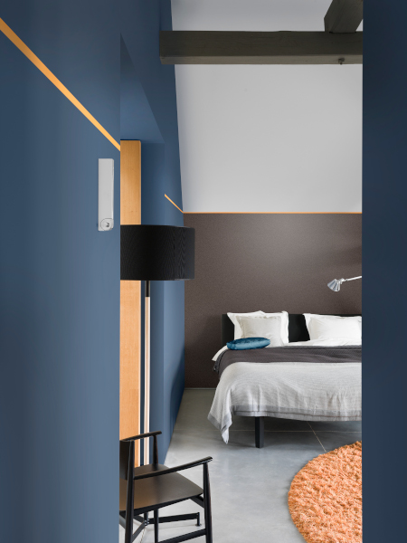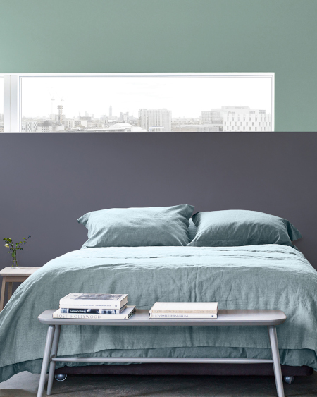 The spectrum of blues is vast, and with seemingly endless shades to choose from you can create a variety of effects in your bedroom. Vast Lake and Breton Blue interact wonderfully with each other to make a peaceful oasis.
