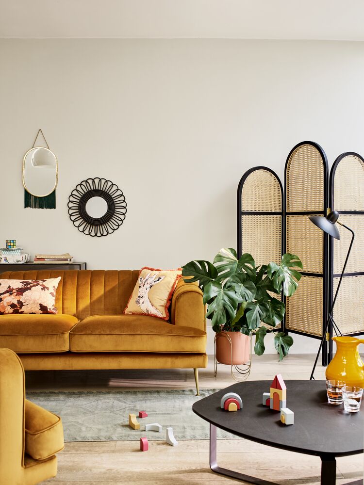 Alternatively, opt for softer tones like Honey Nut on the walls for a more subtle take on this colour palette. Pale yellows pair beautifully with pastel greens and blues for a soothing colour scheme, while warm neutrals allow yellow to pop.
