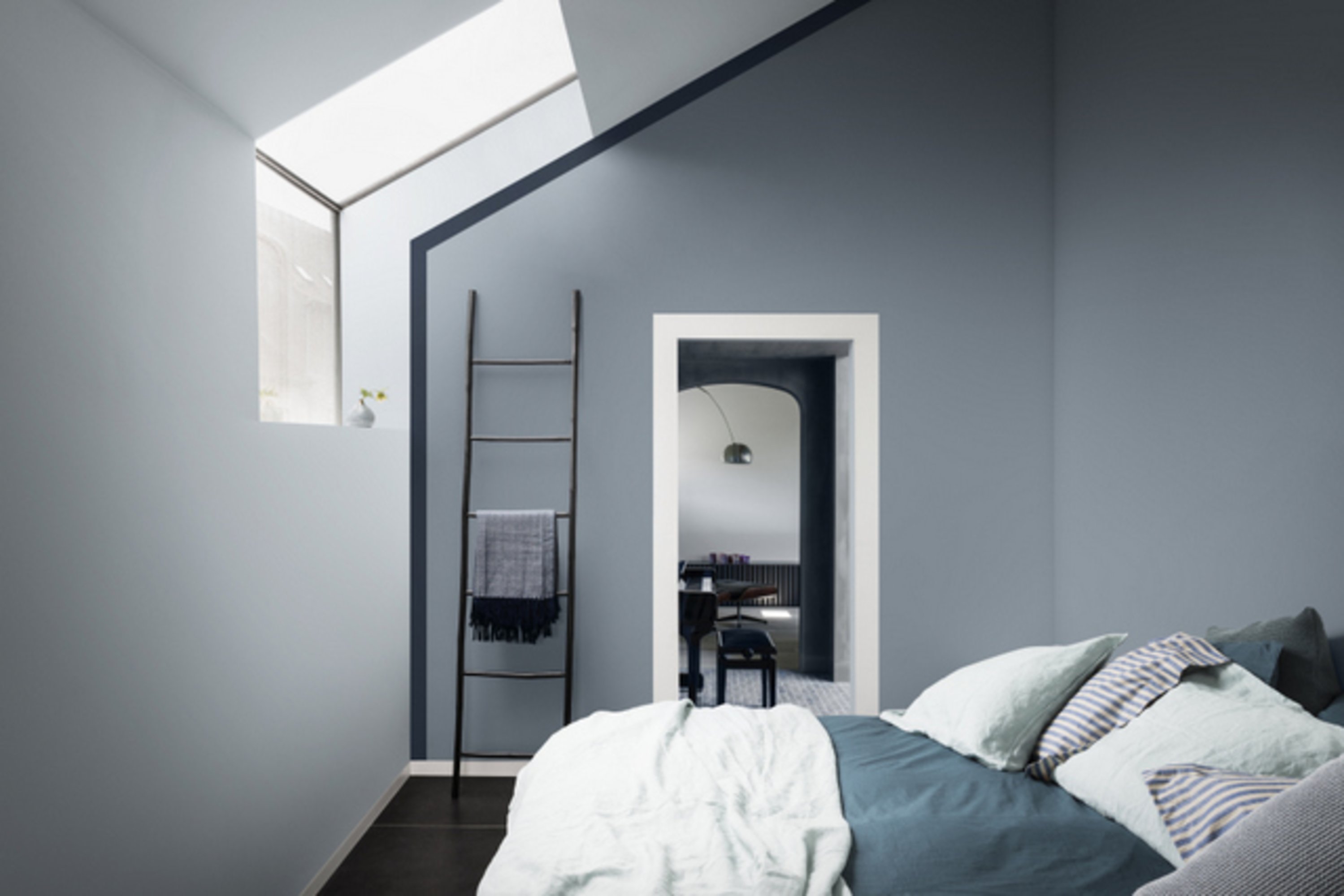 Inky blues like Denim Drift are the ideal way to create contrast in a blue and white bedroom while keeping the overall design bright. Use this shade for a feature wall and paint the rest of the room white, including woodwork and trim, or try colour drenching for a more dramatic look. Blue or grey bedding complements the walls, while white or navy blue accessories give your bedroom a tonal look.