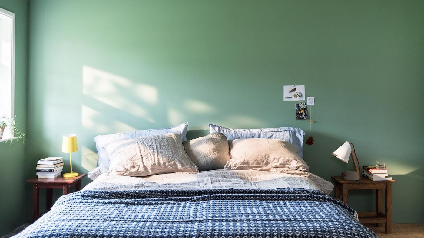 These rooms receive warm sunlight in the morning and cooler, shady light later on. Enjoy throughout the day by painting in pale blues or greens – their soft, soothing quality will look beautiful in any room, morning, noon and night.