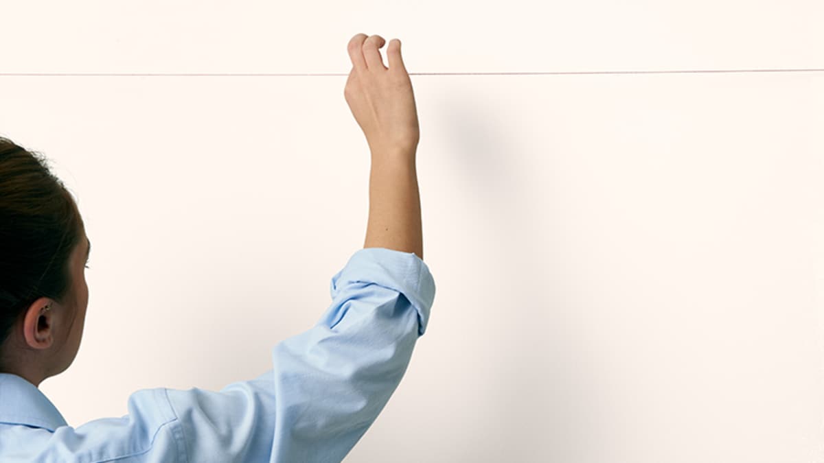 Cover a length of string with chalk, by running the string along the side of the chalk. Stretch the string across the wall, connecting the points you’ve marked up in pencil. Secure the ends of the string with masking tape. Check the string is straight, then ping the string to leave a chalk line across the wall. Repeat for the sides of your headboard.