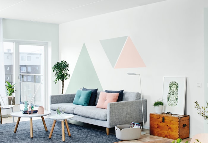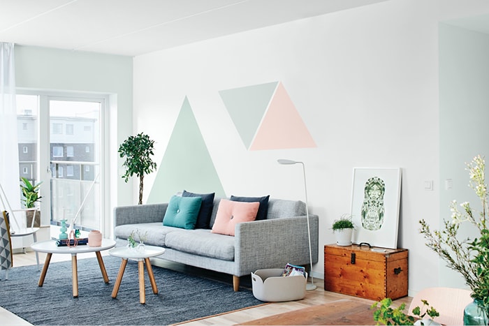 For a playful spin on this trio of shades, get creative with colour block triangles.