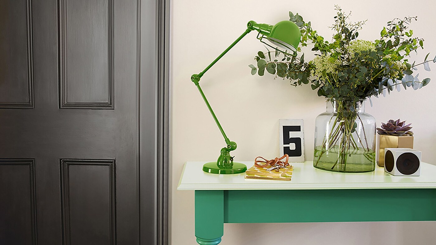 Transform a tatty table with a bold lick of paint. For a fashionable finish, paint the top and legs in contrasting shades. (You can use the Dulux Visualiser to find tonal combinations, then have your chosen colours mixed in either a mid-sheen Satinwood or low-sheen Eggshell.) For ease, flip the table upside down and start with the legs, before turning it back over to paint the top.