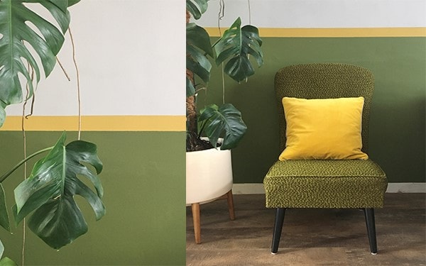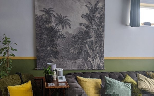 With the right green paint in hand, Leah set about creating her two-tone split wall, adding a mustard strip in the middle to tie in with her mustard cushions. “I'd always thought of painting walls as very one-dimensional and didn't even think to stray from that path, but breaking the wall up with different colours has really brought more depth and helped me feel like we were nearing the end of our decorating journey,” she explains.