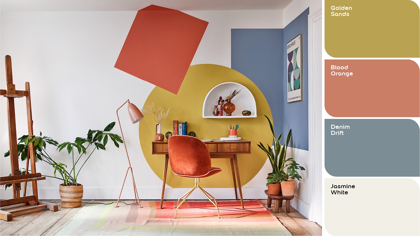 We also love the choice of colours that really make the wall art come alive: primary shades of Golden Sands, Denim Drift and Blood Orange from the Simply Refresh Feature Wall collection, set against crisp Jasmine White from our One Coat range.