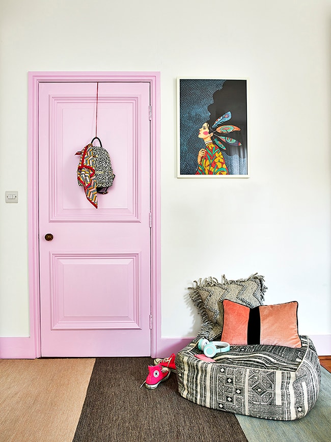 If you don’t want to commit to pink walls, painting your doors and skirting boards pink is an excellent alternative. Just be sure to use the right paint – Dulux Quick Dry Satinwood will work wonders for your wooden doors and comes in this lovely shade of Pretty Pink. Paint the rest of the space in a neutral shade to let your woodwork stand out, then tie the design together with pink room décor like cushions, rugs and wall art.