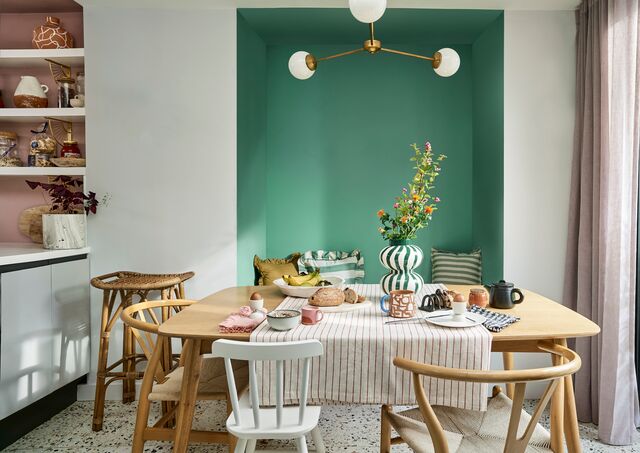 In open-plan homes with shared living and dining areas, you can create visual distinction between each space with different paint colours.