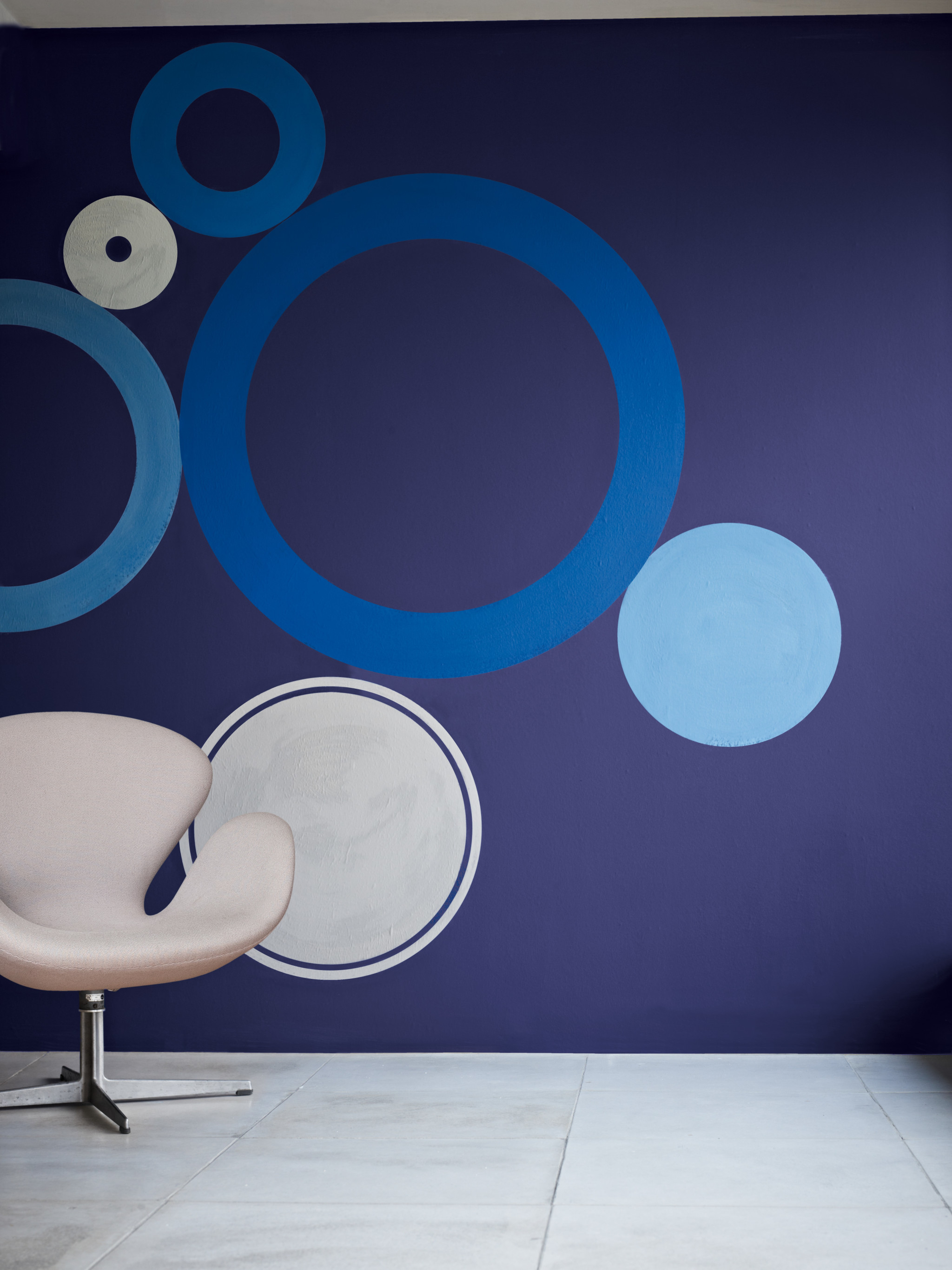 Where do you like to get creative? Perhaps in your study, your kitchen or in your living room? Wherever you find yourself searching for inspiration, consider a dark blue wall with eye-catching shapes. Paint a background of Indigo Night, then choose three or four other shades of blue and paint a variety of different sized circles. It’s easier than you might think as all you need to draw the circles is some string, a drawing pin and a pencil. Find out exactly how to paint a circle wall using our handy step-by-step guide.