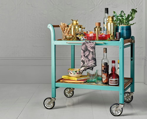If you’ve picked up an old drinks trolley at a vintage market or already have one at home, serve your cocktails in style with the ultimate bar cart revamp. In less than an hour, you’ll have a showstopping piece of upcycled furniture to impress your guests or your Instagram followers. Use a dazzling colour like Proud Peacock to breathe new life into your piece. Watch this video to find out how. Cheers!