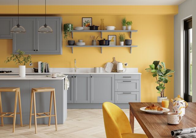 - Golden yellow. Rich, golden colours such as California Days and Honey Mustard add sophisticated warmth and depth to your kitchen. These shades work well in larger kitchens or spaces with lots of natural light, creating a cosy and inviting atmosphere.