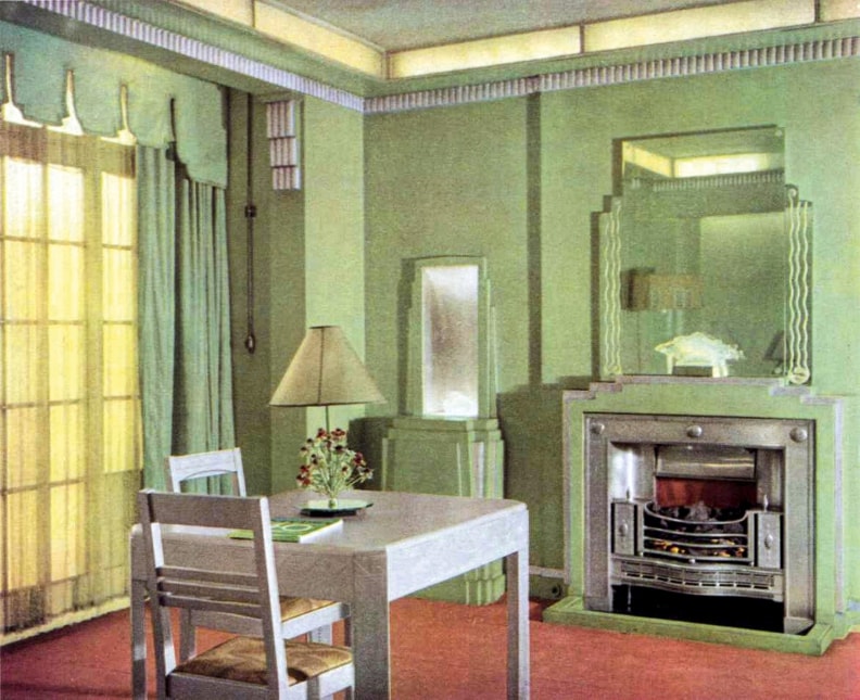If you’re looking to add a splash of 1930s retro room décor to your home, think simple. Pastel, gentle tones, and clean geometric lines are the order of the day.