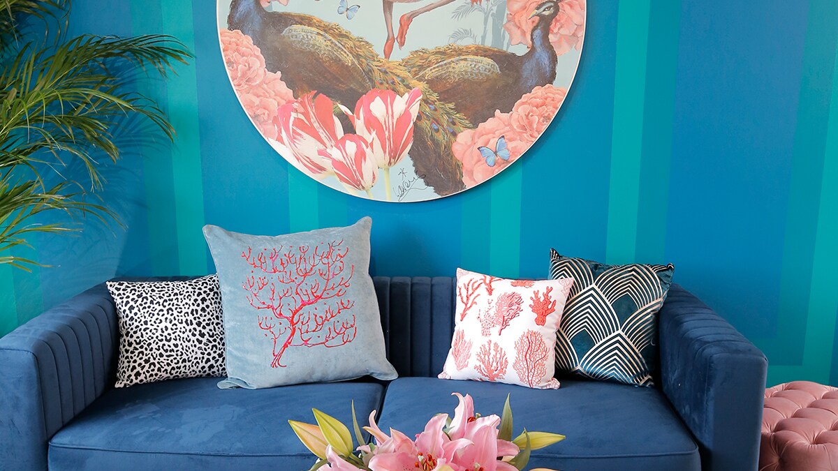 Made by Marianne: We asked our Dulux colour guru, Marianne Shillingford, for her take on the hues in the room Laurence designed. “We love the dramatic peacock-inspired tones used in the concentric panelling in Claire’s living space. If you are a little nervous about the panelling technique, perhaps opt for a bold use of colour on one of the walls or ceilings instead. Deep, inky blues are a super stylish but very liveable choice for a busy living space, so we’d recommend pairing Indigo Shade or Ink Well with a greige neutral like Pebble Shore for a beautiful yet still dynamic scheme. The deep teals also work beautifully with other jewel tones like coral pinks, emerald greens or mustards which can be added through the room’s accessories.”