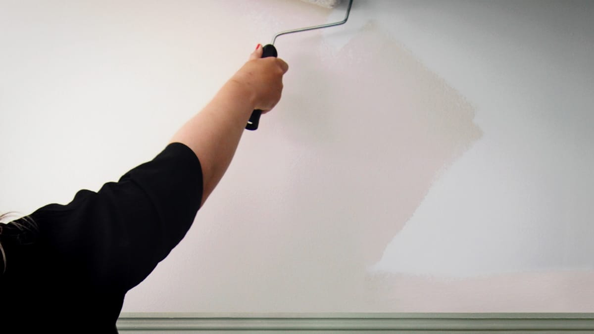 9. Paint all the edges in the emulsion with a paintbrush first, then colour the wall using a roller. Leave it to dry and then paint a second coat. When the second coat is nearly dry, remove the masking tape.