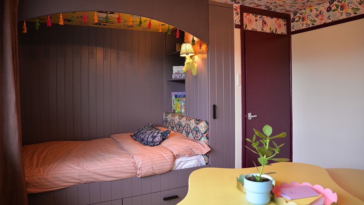 Keen to try purple for ourselves, we’ve brought elements of the design into a bedroom makeover using lilac shades Dusted Fondant and Acai Berry.