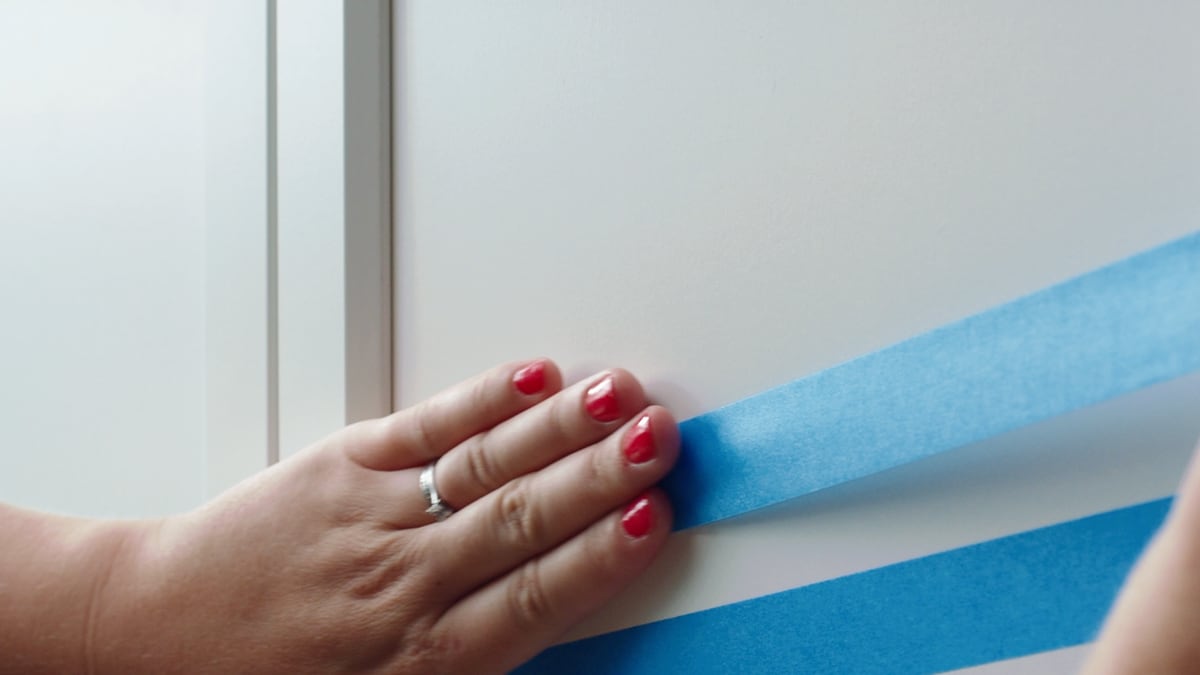2. Set the straight edges of your design with low-tack masking tape suitable for delicate surfaces, ensuring the lines are equal width across the surface.