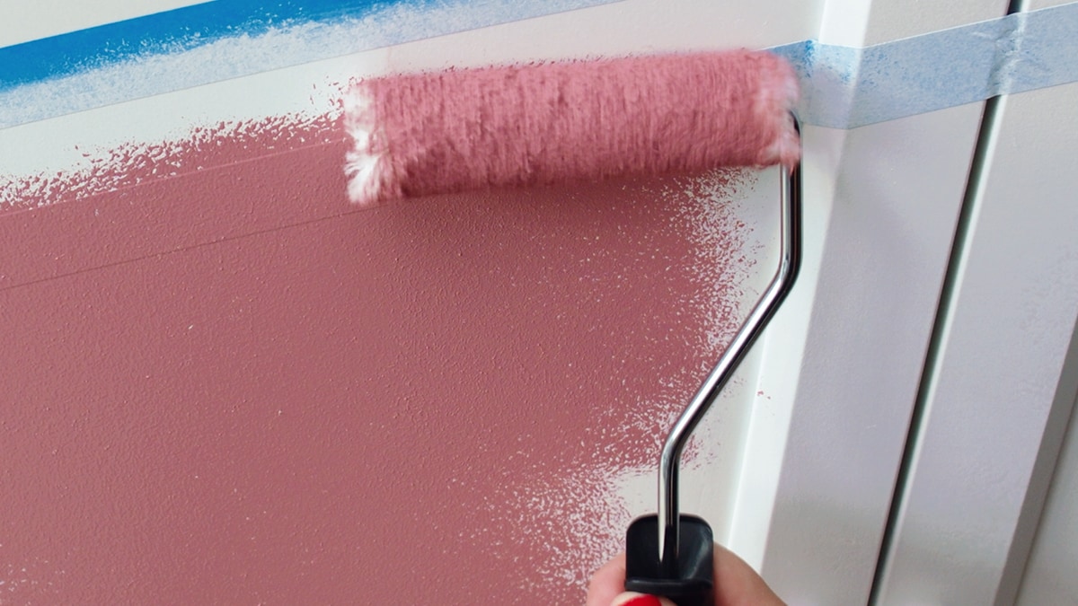 6. Once the primer has dried, you can start adding colour. Using Dulux Quick Dry Eggshell in Raspberry Diva, and the same technique for the primer, paint the cabinet. Use a roller for large areas and a paintbrush for the corners, crevices and around the handles. Dulux Quick Dry Eggshell is perfect because it’s water-based so you can paint two coats in a single day (unlike solvent-based). Plus, it’s more durable and wipeable.
