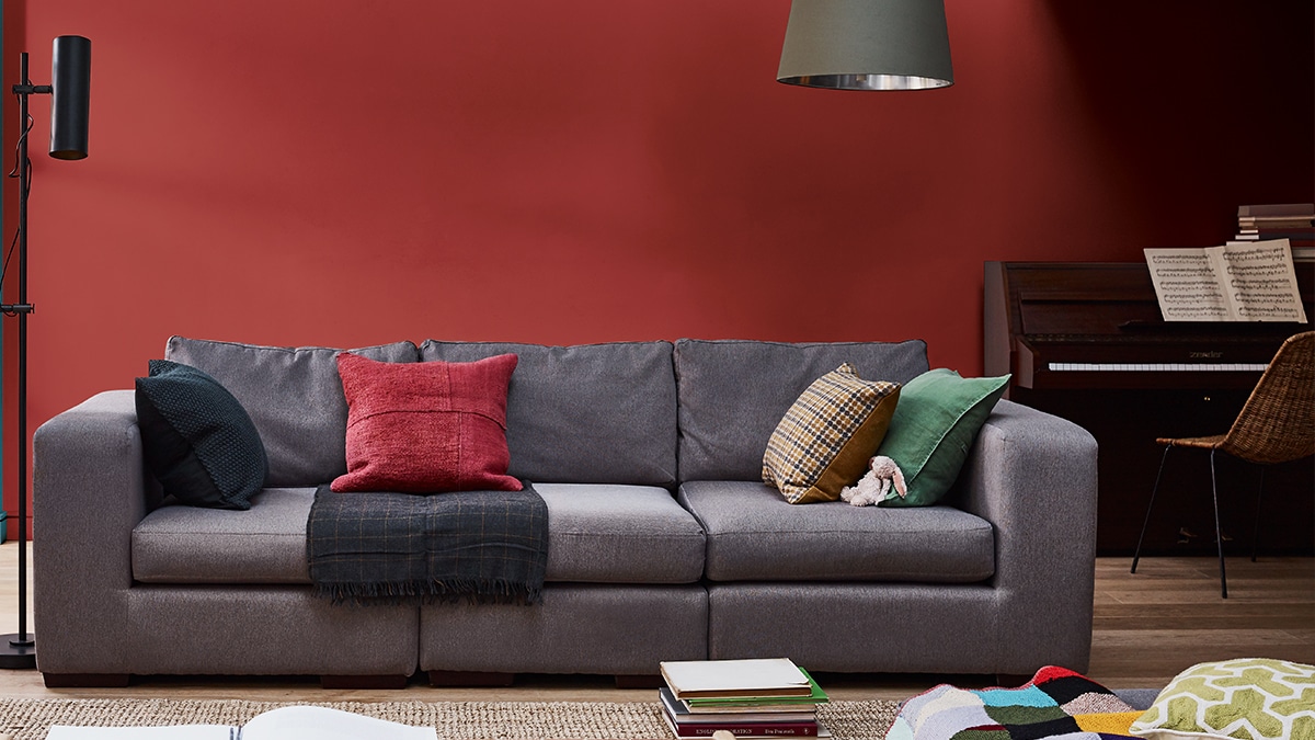 Earthy tones and berry hues like Velvet Cake are a deliciously stylish, contemporary option. Natural tones such as browns and greens bring the whole palette together for a cocooning vibe. Perfect for a cosy living room.