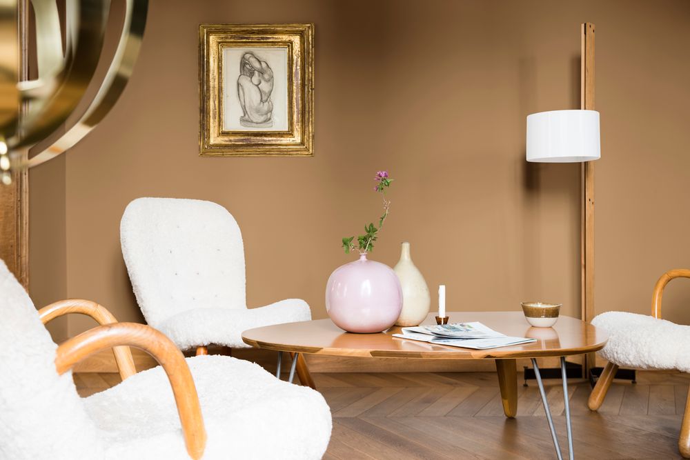 Don’t shy away from browns and greens in the bedroom, as they can be incredibly blissful tones in a space. Picture yourself curled up in bed on a Sunday morning with a book, while being encased by warm and gentle autumnal hues like Burnished Brass or Spiced Honey. Soft furnishings in forest greens and dusky rose shades are ideal for tying this aesthetic together, along with potted plants for a real dose of nature.