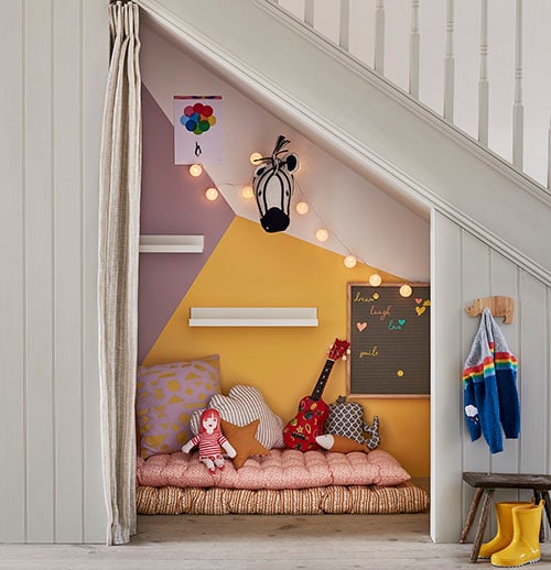 More of us are getting creative in the most unexpected corners of our houses, from boot rooms to basement bars. Big ideas deserve standout colour schemes. So don’t hide your gaming room away – make it pop in a statement shade such as Banana Split – or lean into green tones in your home office with Overtly Olive.