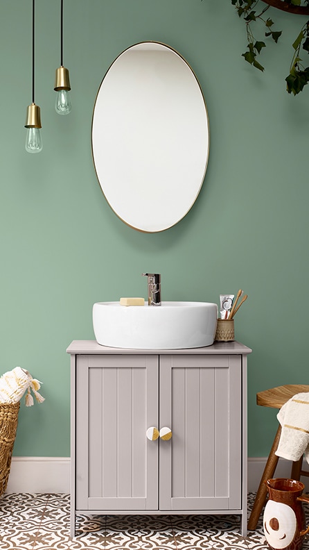 The toilet or bathroom can be completely transformed by dipping into our fresh new colours. In this downstairs loo, we’ve painted the walls in grassy Dewy Lawn – just-added to Dulux Easycare Bathroom – to bring the outdoors in and make the space feel bigger. Meanwhile, we’ve used Dulux Simply Refresh Multi-surface – which can be applied directly onto wood, MDF, melamine and metal – to simultaneously prime and paint the cabinet in Perfectly Taupe™. Now available in our versatile new product, the warm neutral is chic and calming, while the green not only looks beautiful, but is protected from mould for a guaranteed five years thanks to Dulux Easycare Bathroom.