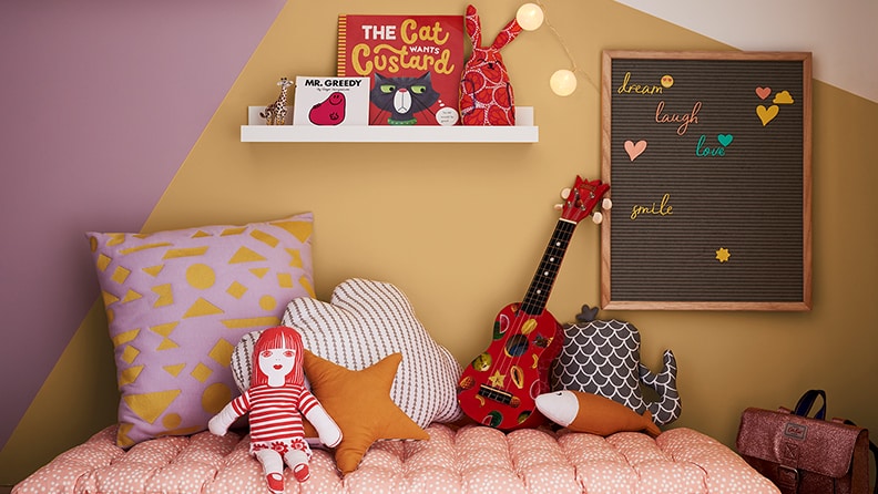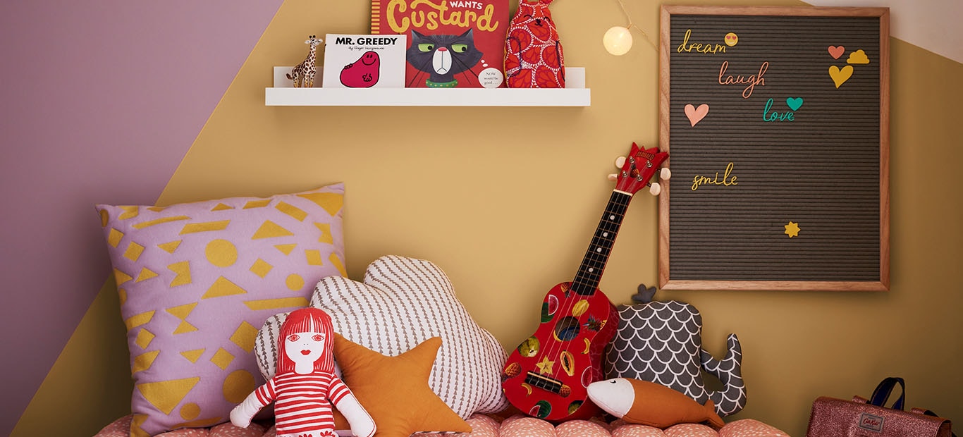 Style tip: cosy up the corner with brightly-coloured and boldly-patterned textiles – cushions, throws, rugs – together with their favourite toys and books. You might not see them all summer…