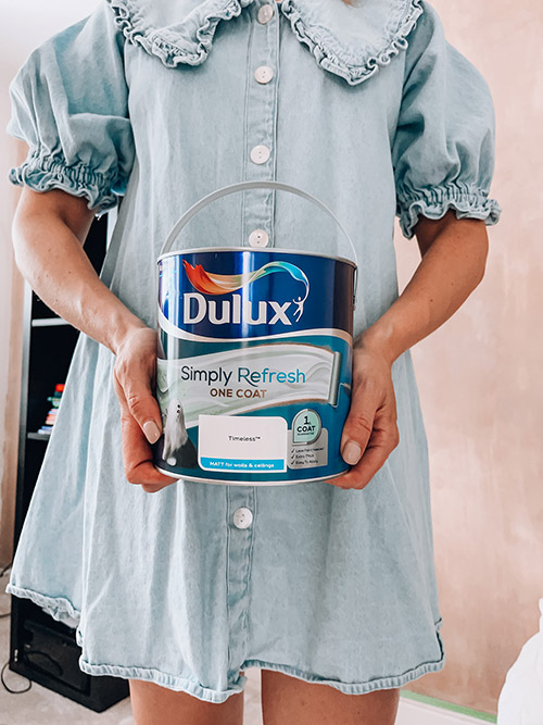 “Dulux Simply Refresh is a new premium finish range that lets you update your home in less time because it goes on so well, covering your walls beautifully in just one coat. Very helpful when you find decorating a bit of an overwhelming thought!” says Sarah.