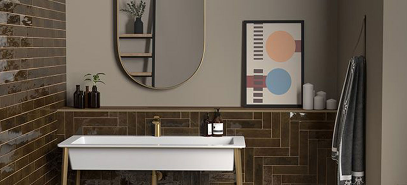 The Dulux Brave Ground™️ Trust palette combines warm, neutral greys with richer browns to create a harmonious colour palette. It’s the kind of colour scheme that you might find in scandi-inspired spaces – both calming and elegant. If that’s the kind of look you like, consider pairing the burnt, warming browns with a charming, rustic tile like the 2021 Topps Tiles Tile of the Year, Zellica™️. Inspired by 18th century Spanish pottery, its handcrafted appearance would sit perfectly in any contemporary kitchen colour scheme.