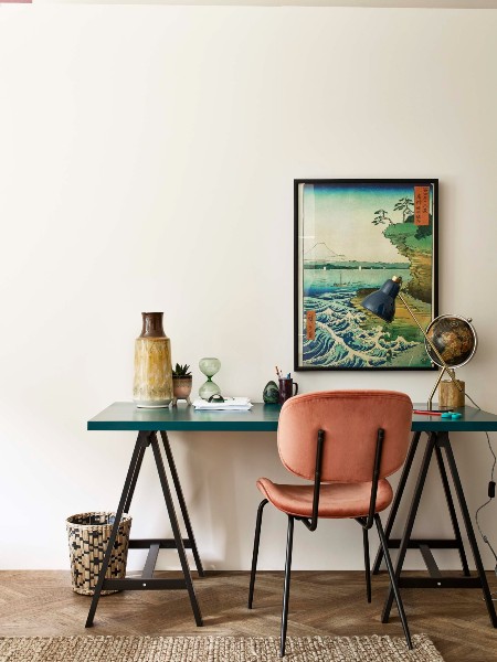There are so many colours Catherine could pick, it all depends on the mood she wants to create. For a calming workspace, Marianne recommends Willow Tree or Polished Pebble. Yet in the how-to video, Marianne uses the strong Teal Velvet in Dulux Quick Dry Satinwood to supercharge the space!