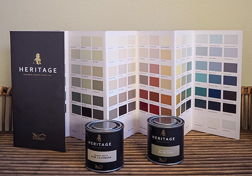 Use the Heritage Colour Card to easily navigate your way through the range. Each column has 2 light, 2 mid and 2 deep colours, as well as a white, to help you find the right complementary colour scheme.