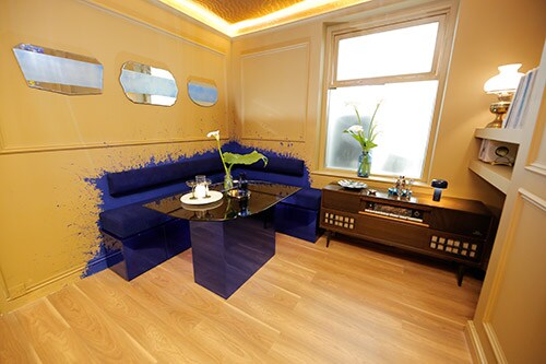 Jordan and Russell took Tom and Richard back to the future in this transformation. 2LG Studio were inspired by the retro furniture already in the room, such as vintage mirrors and a Chesterfield sofa.