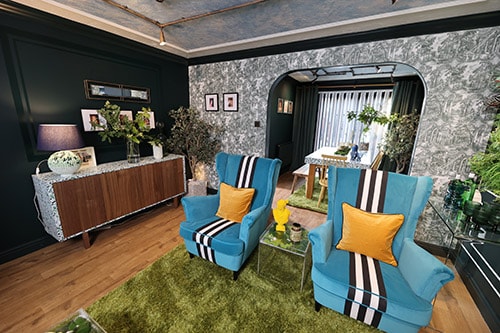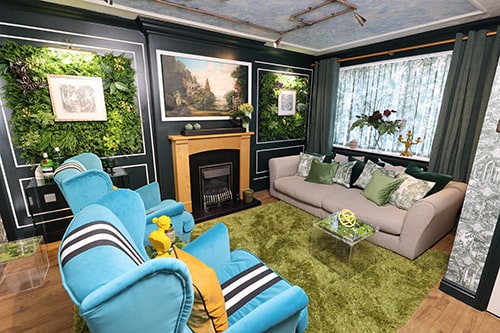 ‘Ginterlude’ was Laurence Llewelyn-Bowen’s manifesto behind Jamie and Leanna’s living room makeover and is probably his most risky design of the series. He wanted to create the perfect spot to enjoy a much-needed glass of gin after a long day.